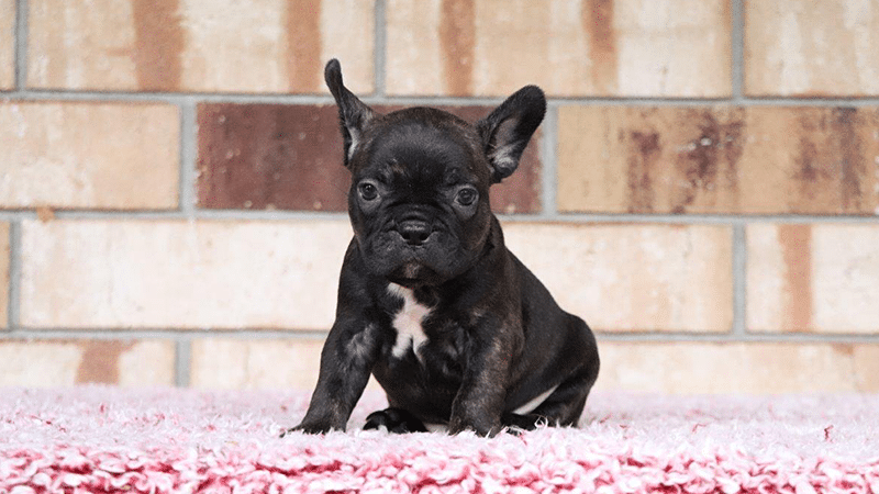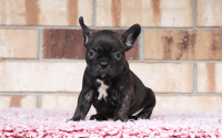 Belle is a beauty and a charmer at the same time — and the only girl in this litter! She is a gorgeous Frenchton puppy with a beautiful brindle coat. She is always searching for company and can usually be found romping around the yard with her brother and sister. Belle is fun-loving, cheerful, and loves to cuddle!